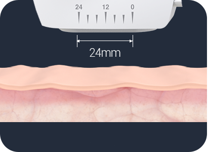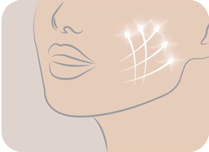 Microson Pen викликає розгладження зморшок, стимулюючи утворення нового колагену в поверхневому шарі дерми через формування точок термальної коагуляції на глибині 1.5 мм.
