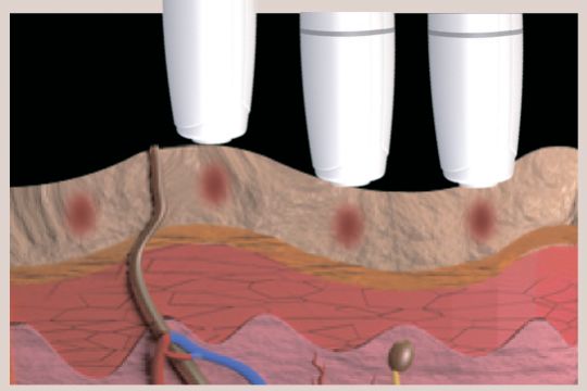 Шар SMAS складається з волокон колагену та еластину і відіграє роль у передачі м'язових скорочень на поверхню шкіри. Апарат Microson Pen забезпечує підтягування шкіри, створюючи точки термальної коагуляції у SMAS.