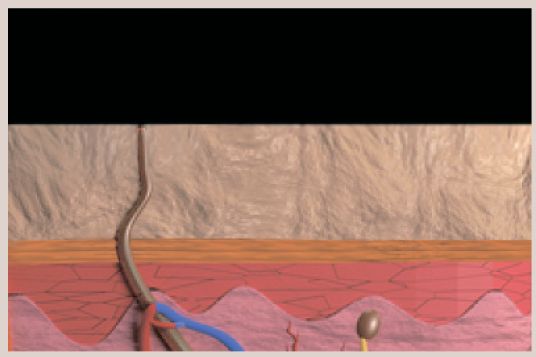 На глибині 3 мм від поверхні шкіри дерма з'єднується зі SMAS фіброзною перегородкою.